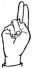 На ћирилици написано МАРИЈА МУМАЛО састоји се из 12 слова [?]. Исписано ћириличном једноручном азбуком за глувонеме: